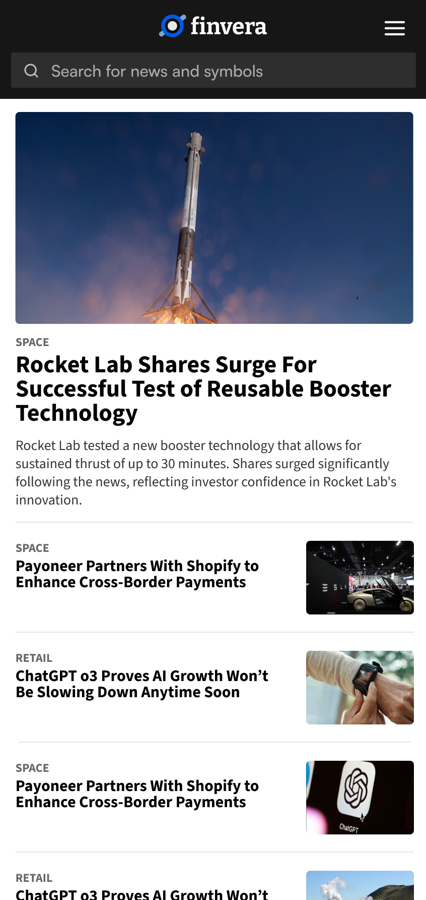 Compelling visuals drive reader engagement, but sourcing quality images is time-consuming and expensive. As a startup, Finvera didn't have a deep image library to draw from either. I designed a fallback system: when a ticker is the subject of an article, the site pulled the company's logo, detected its dominant color, and generated a matching background gradient. This gave every article a polished, distinct look in feeds and share previews without sourcing or licensing images for every post.