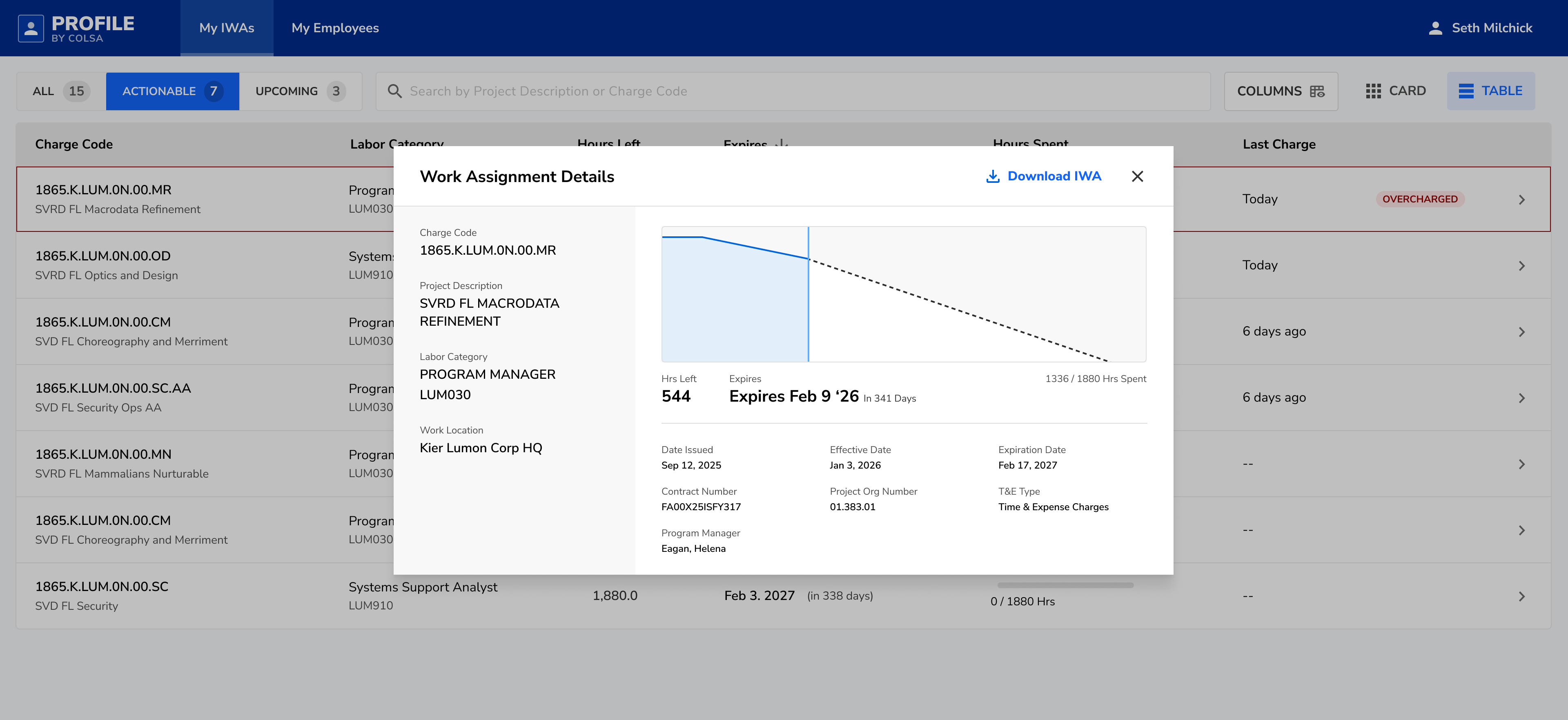 Profile and its surrounding improvements shifted work authorization management away from email threads and memory, and toward a system that prevents errors through better data, better timing, and clearer UI. Time-on-task improved in usability testing, unresolved overcharges decreased by 65%, and user satisfaction improved based on post-rollout survey feedback.