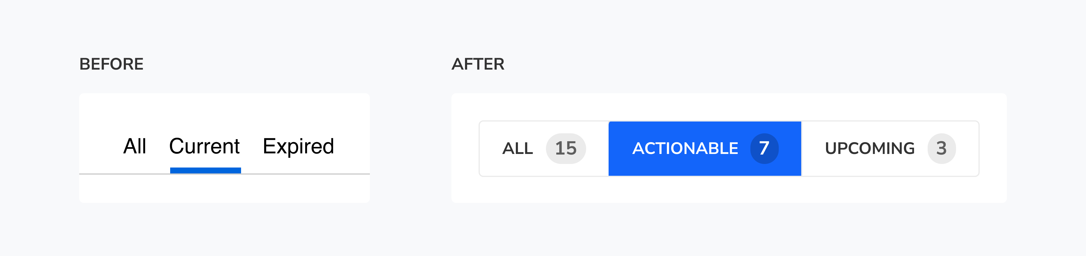The old tabs were All, Current, and Expired. But "Expired" wasn't a view users needed. People needed to know what they could charge to at any given time, and what was coming next. We reframed the experience around three modes: All for full context, Chargeable for items effective today and still relevant, and Upcoming for future authorizations so users could anticipate transitions and avoid last-minute confusion.