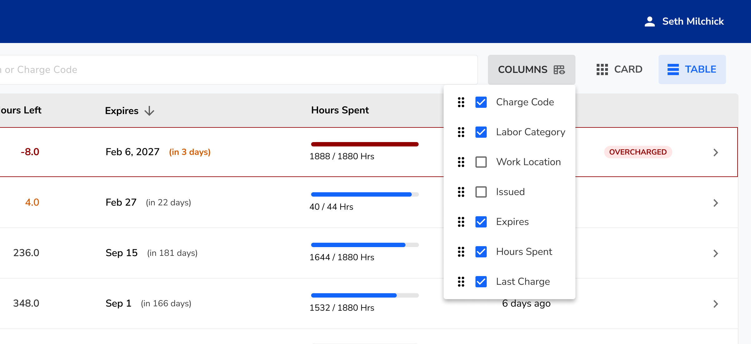 In government contracting, employees routinely split time across multiple projects, and each project can include multiple charge lines with different budgets, effective dates, expiration dates, and constraints. When someone charges to the wrong line (or keeps charging after hours are exhausted) it creates a cascade of cleanup work for project managers.
